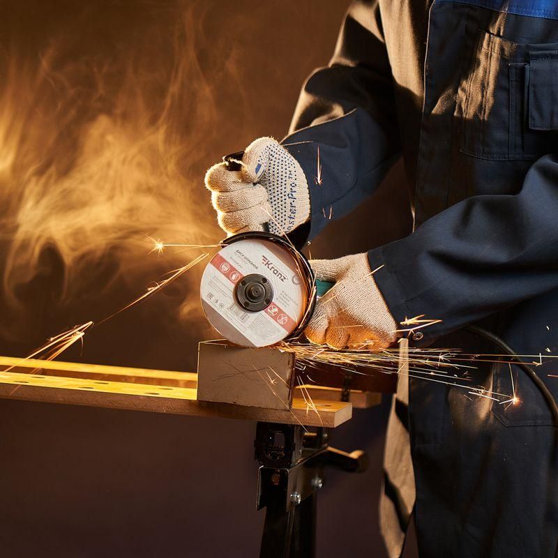 Отрезной диск KRANZ используется для обрезки и обработки тонкостенных металлических изделий, таких как листы, трубы, профили, проволока и т.д. Диск совместим с большинством угловых шлифмашин (УШМ), которые имеют стандартный диаметр посадочного отверстия (22,23 мм). Отрезной круг изготовлен на бакелитовой основе (BF), что обеспечивает гибкость и устойчивость к изломам. Благодаря двойной армированной стеклосетке достигается усиленная боковая нагрузка 40 Н, что гарантирует повышенную безопасность для пользователя. Абразивное зерно из электрокерамического корунда (А) обеспечивает износостойкость и высокую производительность. Диск следует применять строго по назначению, а также соблюдать технику безопасности и использовать средства индивидуальной защиты.
