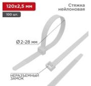 Нейлоновый хомут (кабельная стяжка) 150x2,5 мм – простое и экономичное изделие, которое используют для крепления или соединения в жгут проводов, кабелей и любых разновидностей труб. Прочность, эластичность и простота монтажа позволяют использовать их на предприятиях и в быту. Стяжки позволяют соединять детали конструкций, связывать вместе предметы, подвязывать растения и многое другое. Изделия, изготавливаемые из нейлона-6,6 просты в использовании. Для того чтобы установить хомут вручную, необходимо совершить всего пару движений: вставить конец ленты в замок и затянуть. Существуют специальные монтажные инструменты REXANT, которые облегчают и ускоряют установку (арт. 12-4524, 12-4521 и 12-4541). Отличительные свойства нейлоновых хомутов: высокая прочность на разрыв, пластичность, долгий срок службы, устойчивость к внешним факторам. Также изделие обладает диэлектрическими свойствами и не выделяет дым при горении. Поставляется в упаковках по 100 штук.