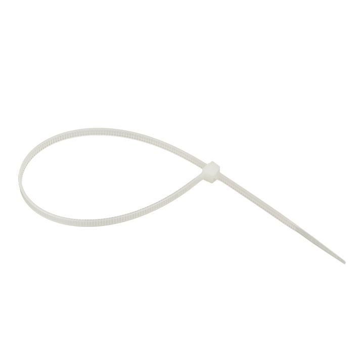 Предназначен для увязки кабелей и проводов в пучок и монтажа кабельных линий и проводников. Ремешок самофиксирующийся, блокирующий механизм. Изготовлен из Nylon 6.6, устойчивого к старению, коррозии, воздействию солей, ультрафиолета, кислот, щелочей, спирта, бензина и масел. При производстве кабельных стяжек черного цвета добавляется угольный порошок, который является одним из наиболее эффективных стабилизаторов. Он улучшает физические свойства продукции в стойкости к погодным условиям и УФ-излучению (прямые солнечные лучи).
