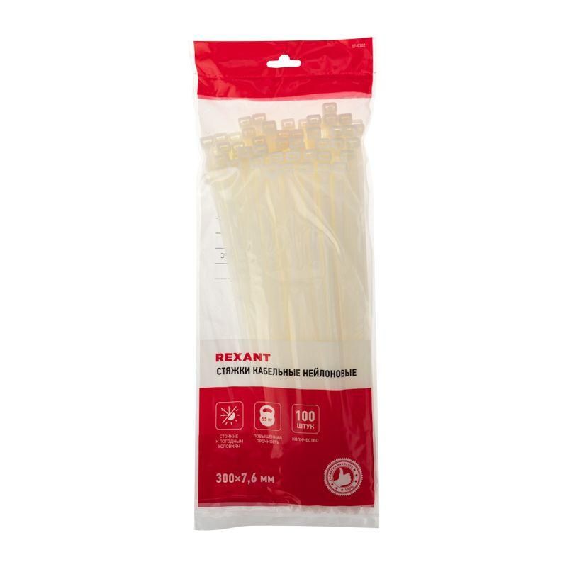 Хомут кабельный 7.6х300 нейл. бел. (уп.100шт) Rexant 07-0302
