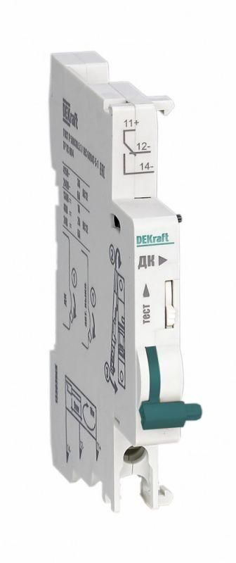 Контакт дополнительный ДК-105 для автоматических выключателей серии ВА-105 и ВА-105 DC Dekraft; предназначен для сигнализации состояния выключателя ВКЛ/ОТКЛ; тип контакта переключающий; ширина 9 мм; присоединение к выключателю слева.