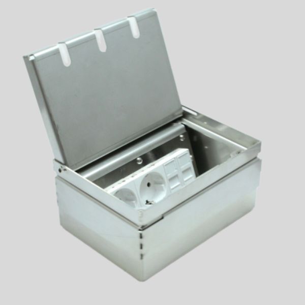 Стальной напольный люк под розетки с откидной и вынимаемой крышкой - прочное и эстетичное решение для офиса или дома. В комплекте 3 розетки 220 В. Крышка глубиной 15 мм позволяет уложить плитку или паркетную доску, оставляя видимым лишь тонкий периметр 3 мм. Люк выдерживает нагрузку до 600 кг, подходит для стяжки от 60 мм и имеет вводы Ø25 мм для кабелей. Регулировочные винты обеспечивают точное выравнивание (+30 мм). Допускается влажная уборка при закрытой крышке. Надёжно, аккуратно, удобно.