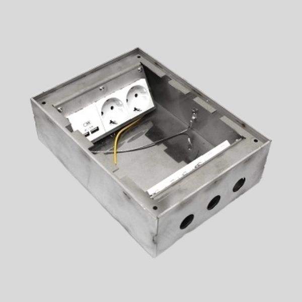 Стальной напольный люк под розетки из алюминия с алюминиевой крышкой и накладкой из нержавеющей стали - прочное и эстетичное решение для офиса или дома. В комплекте 6 розеток 220 В. При наклеивании на крышку напольного покрытия люк становится невидимым. Люк выдерживает нагрузку до 1000 кг, подходит для стяжки от 60 мм и имеет вводы Ø20 мм для кабелей. Регулировочные винты обеспечивают точное выравнивание (+30 мм). Допускается влажная уборка при закрытой крышке. Надёжно, аккуратно, удобно.