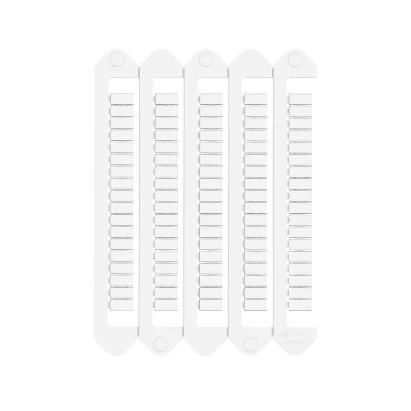 Маркировка клемм компании ДКС для печати на принтере MarkTC и MarkTC Plus. Материал – АБС-ПК. Класс горючести по UL94 - V0. Температура эксплуатации от –40 до +80 °С. Цвет – белый. Фиксируется на клеммах защелкиванием. Тег размером 5х10 мм. На пластине 90 тегов. В упаковке 30 пластин - 2700 тегов.