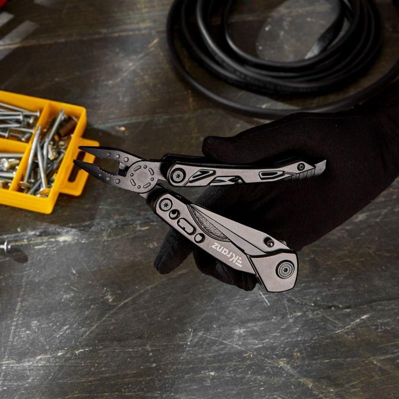 Мультитул 10 в 1 KRANZ – это многофункциональный инструмент, который используется для выполнения широкого спектра действий. Популярен среди специалистов многих областей, а также в быту. Удобный, легкий и компактный инструмент выполнен из нержавеющей стали 420 и оснащен алюминиевой ручкой. Вес: 361 г. Комплектация мультитула: 1. Длинногубцы 2. Плоскогубцы 3. Кусачки 4. Крестообразная отвертка 5. Напильник по металлу с плоской отверткой 6. Открывалка для бутылок 7. Ножницы 8. Резак ремня безопасности 9. Нож 10. Огниво со свистком