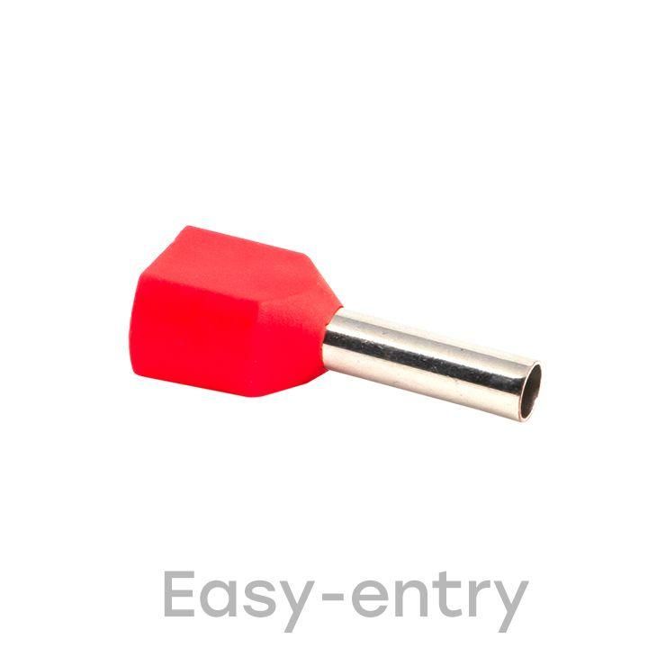 Одинарные и двойные втулочные наконечники (НШвИ и НШвИ2) EKF PROxima являются единственными специально разработанными наконечниками под опрессовку, которые полностью заменяют обязательный процесс облуживания многопроволочных медных проводов (типа ПВ-3, ПВС и т.п.) при монтаже различного электрооборудования. Втулочные наконечники состоят из медной луженой трубки, один конец которой развальцован для облегчения ввода многожильного провода и изолирующей манжеты из полипропилена.