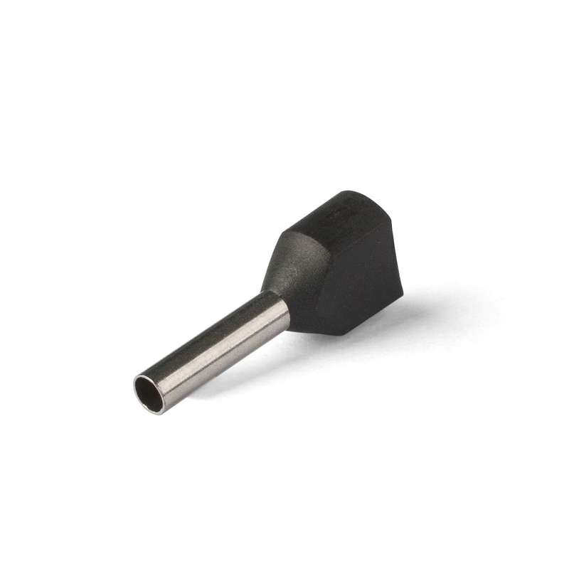 • Для монтажа сдвоенных проводов одинакового сечения • Предназначены для оконцевания методом опрессовки гибких многопроволочных медных проводников. Трансформируют концы многожильных проводов в монолитные штифты • Современная альтернатива обязательному облуживанию концов многожильных проводников при подсоединении к клеммам • Размеры изолированных манжет и втулок наконечников НШВИ(2) рассчитаны для монтажа и подключения двух проводников • В условиях высокой плотности монтажа двойные втулочные наконечники являются единственно возможным контактным соединением двух проводников • Материал коннектора: медь марки М1 • Покрытие коннектора: электролитическое лужение • Материал изоляции: полипропилен. Не содержит галогенов • Термостойкость изоляции: 105 °C • Цвет изолирующих манжет выполнен в соответствии с цветовой маркировкой DIN 46228, часть 4 • Одинарные и двойные втулочные наконечники «КВТ» представлены в одинаковой цветовой гамме стандарта DIN, что облегчает их поразмерную идентификацию • Коническая форма манжеты, тип «Easy Entry», облегчает заведение многожильного провода внутрь медной втулки • Обжим провода поверх медной втулки