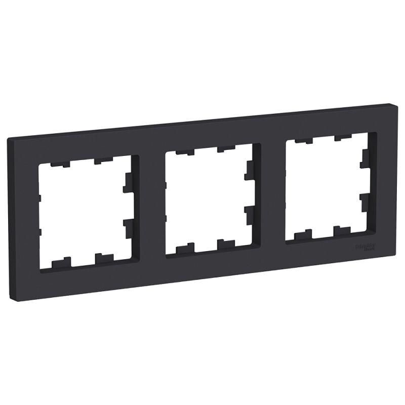 Рамка Systeme Electric (ранее Schneider Electric) серии AtlasDesign в цвете карбон трёхместная. Устанавливается в вертикальном и горизонтальном положениях. Лицевые детали из качественного ABS-пластика, устойчивого к царапинам и УФ-излучению. Позволяет гармонично вписать электроустановочное изделие в интерьер помещения. Благодаря покрытию «soft touch» к изделию приятно прикасаться.