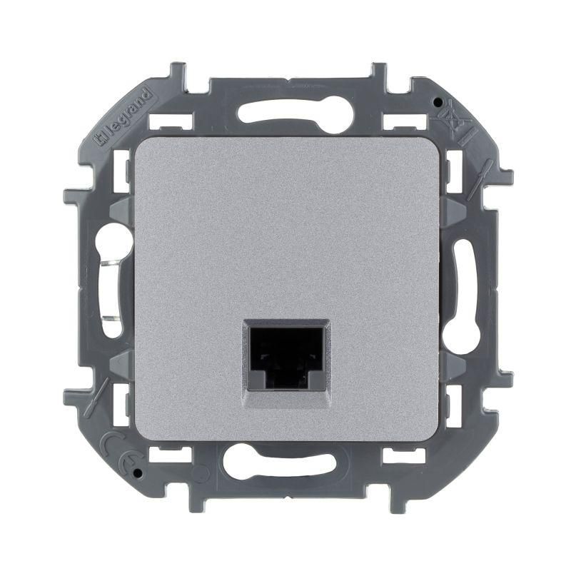 Розетка компьютерная для скрытого монтажа Inspiria, 1 разъем RJ45 категория 5е UTP, цвет "Алюминий". Предназначена для быстрого подключения персональных компьютеров, принтеров, роутеров и другого оборудования к информационным сетям категории 5е со скоростью передачи данных до 1000 Мбит/с. Возможно прямое подключение 1 устройства.