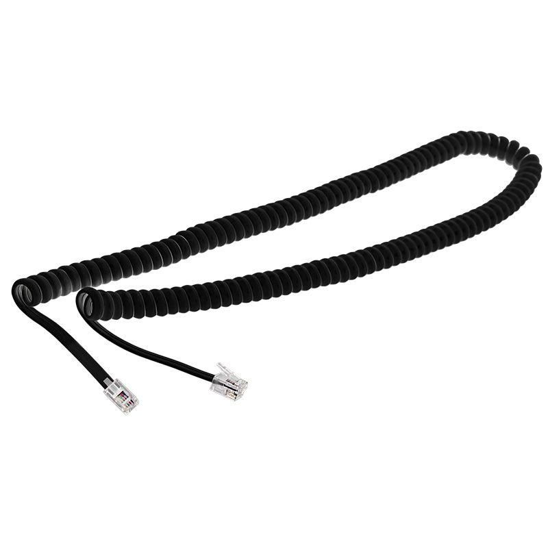 Шнур предназначен для подключения телефонных трубок к телефонным аппаратам. Применяется в радиостанциях, медицинской технике и в других областях, где необходим шнур с переменной рабочей длиной. Изделие представляет собой витой кабель, на концах которого располагаются опрессованные разъемы RJ-10 (4P4C). Контакты разъемов покрыты слоем золота по технологии вакуумного напыления, что обеспечивает улучшенную пропускную способность сигнала. Жилы и общая оболочка изготовлены из ПВХ. Материал отличается износостойкостью и долгим сроком службы. Двойная изоляция надежно защищает провод от механических повреждений. Витая конструкция кабеля обеспечивает удобное изменение длины провода, а также предотвращает перегибы и спутывание как в развернутом, так и в собранном виде. Рабочая температура шнура –20...+50 ?. Длина провода составляет 2 м, цвет – черный.