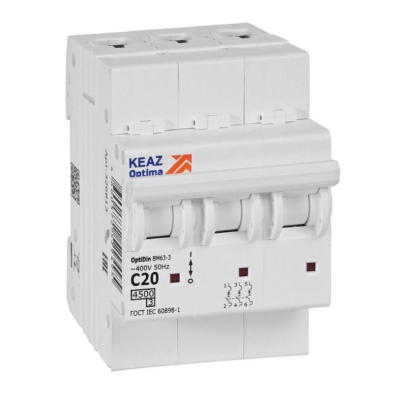 Выключатель автоматический модульный OptiDin BM63-3C20-4.5-УХЛ3 КЭАЗ 326813