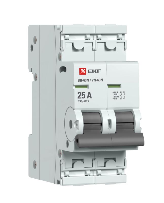 Выключатели нагрузки ВН-63N EKF PROxima являются обновлённой платформой успешно зарекомендовавших себя на рынке линейки выключателей нагрузки ВН-63 EKF PROxima. Выключатели нагрузки являются механическими коммутационными аппаратами и применяются для оперативных включений и отключений в электрических цепях переменного тока. Выключатели предназначены для коммутации активных и индуктивных нагрузок, включая двигатели, уже защищенные другими коммутационными аппаратами. Особенностью данной серии является усовершенствованная конструкция. В выключателях имеются пластиковые крышки, закрывающие доступ к винтовым зажимам и служащие для опломбирования выключателей, что исключает несанкционированный доступ к проводникам. Корпус выключателей усилен дополнительными заклепками для обеспечения его максимальной жесткости. Выключатели оборудованы удобной рукояткой управления, обеспечивающей надежное оперирование аппаратами. На лицевой панели выключателей нагрузки имеется цветовой индикатор реального состояния контактов. Конструкция двухпозиционного зажима обеспечивает удобный монтаж выключателя на DIN-рейку.